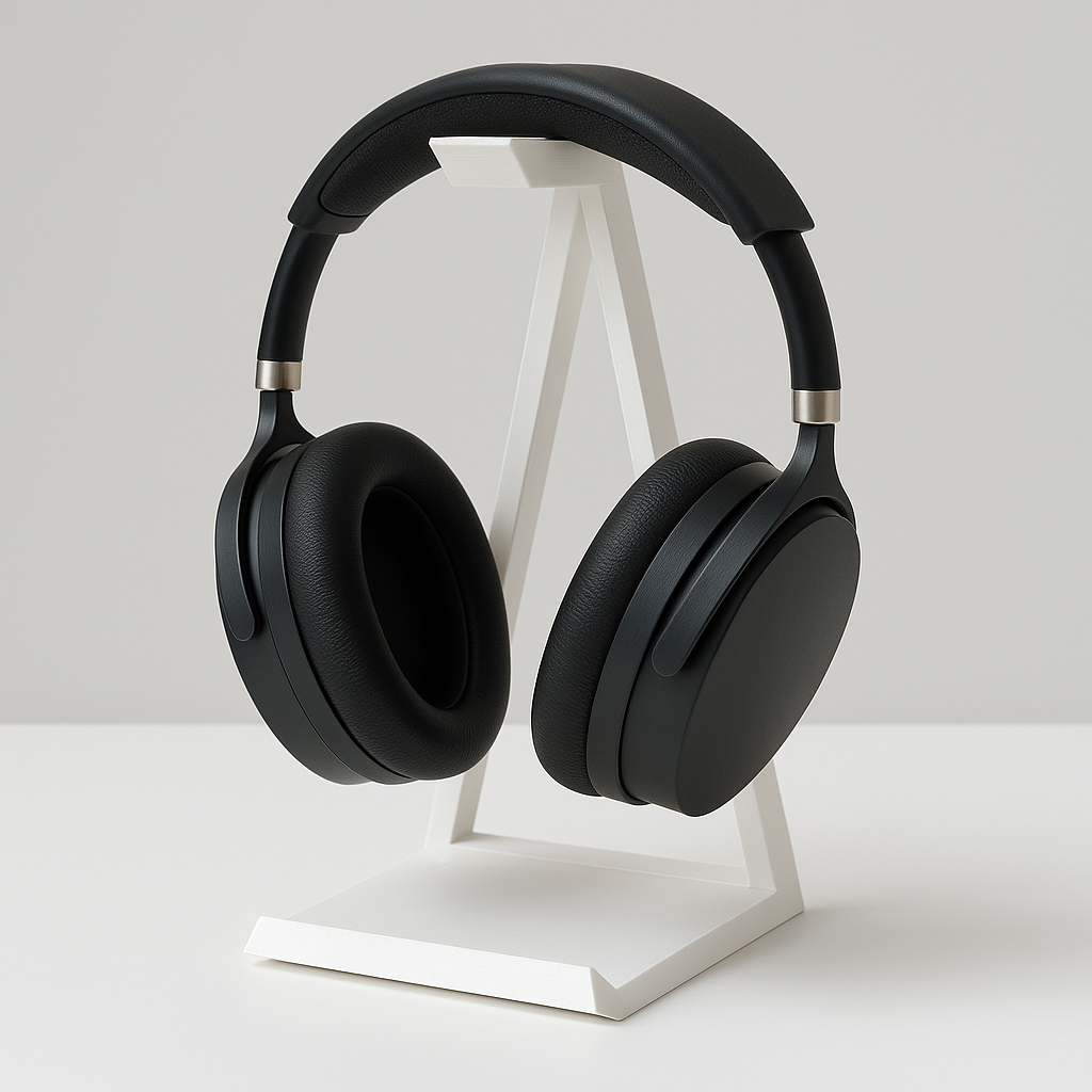 Organize seu setup com estilo e praticidade usando este suporte multifuncional. Desenvolvido em design moderno e minimalista, ele serve como base para fones de ouvido e também pode ser utilizado como suporte para celular quando os fones estão em uso.
