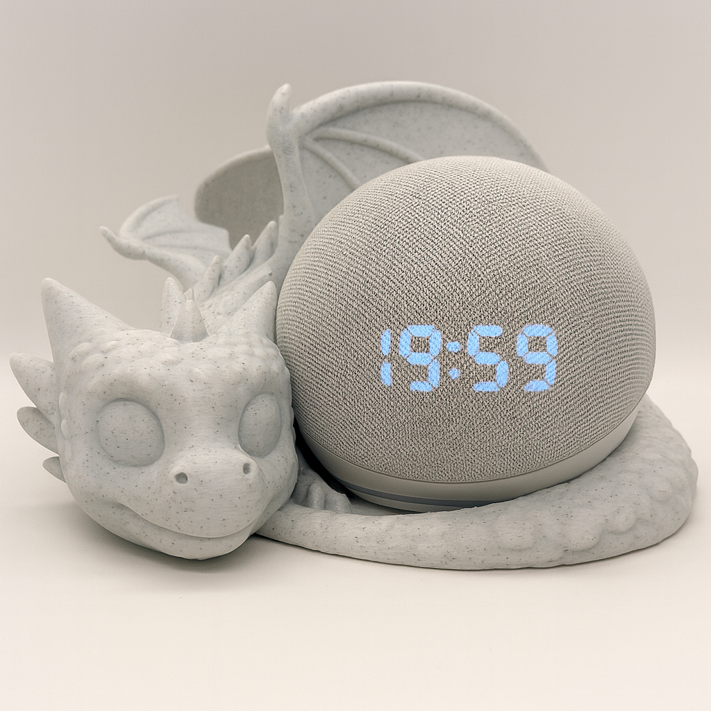 Transforme sua Alexa Echo Dot em uma peça única de decoração com este suporte em formato de dragão estilizado. Criado com design exclusivo, ele envolve o dispositivo como se o dragão estivesse protegendo sua assistente virtual, unindo funcionalidade e estilo geek/fantasia.